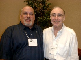 caught mid-chat with pal Bill Crider, ClueFest's "special guest of