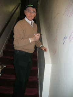 preparing to sign the Mystery & Imagination authors wall, loaded with