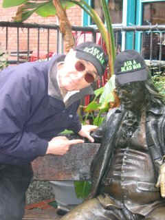 stops to chat with Ben Franklin, one of his oldest fans, on the way to an