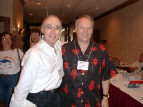 caught mid-chat with pal Bill Crider, ClueFest's "special guest of