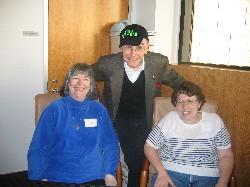 Bob with librarian Padmini Prabhakan, who organized the event, and Kelly Lange. |
