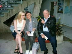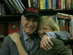 Bob making faces for Pam Finck's camera as he prepares to sign her