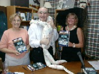 Bob with Joan Wunsch (left), owner of Coffee, Tea and Mystery, and the one and